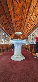 Our first stop was a magnificent church located in the center of the city called the Immaculate Conception Cathedral. It suffered serious damage in the earthquake of 2009, and has undergone restoration and extension. After three years of repairs, the new cathedral was opened to the public in June 2014. The interior was beautiful and the wooden ceiling an impressive work of art. It certainly did look new.