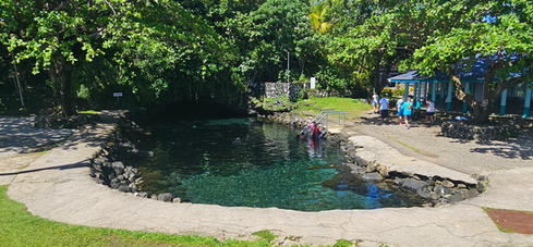 We completed the drive around the island and stopped at a beachside waterhole called the Piula Cave Pool. Driving along their roads we saw much of the rugged countryside.