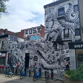 We spend the better part of the morning walking through Old Montreal gazing at the architecture and art in the windows. We made a stop at the downtown IGA store to get provisions for our dinner. By the end of that walk we were hot and tired so we went back to the boat and had a short rest. Cynthia kept going and found lots of wall art and interesting items on the streets. There were large Chess Sets, a Little Red Riding Hood play set, kids running through water spouts and families walking the streets with their children. It was good to see such excitement and activity happening as we have been "locked down" for a long while. It seems that normality in Montreal is happening.