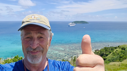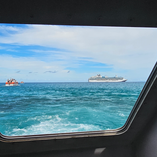 Our ship launched four tenders around 8 am but Jan and I headed in to shore around 9 am, with the last return tender running us back to the ship at 3 pm. It was a classic tropical day—about 30°C, with a bit of wind that took the edge off the heat, but strong sun. The water was warm, the kind that makes you want to stay in longer than you had planned but we had to watch out for the sun rays.