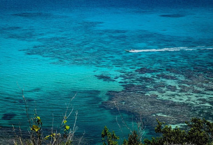 One end of the island rises into a large hill (about 225 feet above sea level), and many hiked to the top along the Hilltop Track and I joined in with others from the ship. The view at the hilltop was absolutely worth it—clear sight of the reefs wrapping around the island, and a perfect look back at the Coral Princess anchored offshore. While at the top a float plane flew past and I was lucky enough to snap a photo as it passed us on the hill.