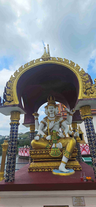 Our first stop was Wat Phra Yai, home to Koh Samui’s iconic Big Buddha, built in 1972. The word WAT means a Buddhist Temple or Monestery. While the statue is modern, the meaning is timeless—Buddhism is central to Thai life, and places like this are living spaces of worship, not just landmarks. The seated Buddha represents calm and protection, and from the steps you get sweeping views over the coast—an unforgettable “welcome to Thailand” moment.