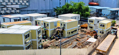As we approached the city, Bangkok revealed itself as a vibrant modern metropolis—towering skyscrapers, an above-ground rapid transit system, and a pace that matched its size. Bangkok is home to roughly 10–11 million people in the city proper, and around 15 million across the greater metro area, and you can feel that scale in the constant motion all around you. During the drive we passed a site where they were converting a building to residential homes using modular concepts.