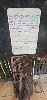 Gardens surrounded a very old bar with carved driftwood and other items made by the locals. The bar had a shelf held up with what looked like tusks from some large animal or possibly the ribs from a whale. It was a rustic place but the beer was cold. It was also a unique location for the passengers as they had new washroom facilities that were nearby and clean.