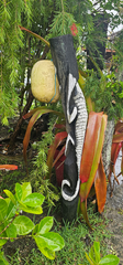 We wandered through the small shops and markets but there really was nothing more to see. There was no possible way to hire a taxi as there were none available, and walking distance to anything of interest on this tiny island was at least an hour. With the heat and humidity plus the threat of more rain, we decided to soak in the area and save the memories we could gather in the short time we were at shore. There was lots of flower gardens and decorative items worthy of a photo so enjoy the beauty.