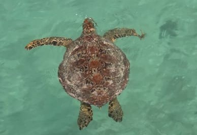 Walking from the tenders to shore was a long metal dock however, we were not fortunate enough to see a turtle graciously swim under the dock and then look back and say hello to the new tourists. Friends that we met on board gave me these photos and I wanted to share the moment with you. This guy was cute and when he looked up, the colour of his head was brilliant.